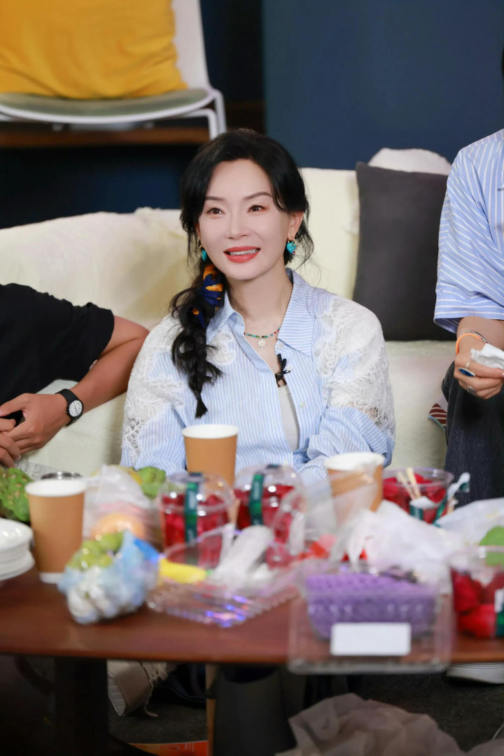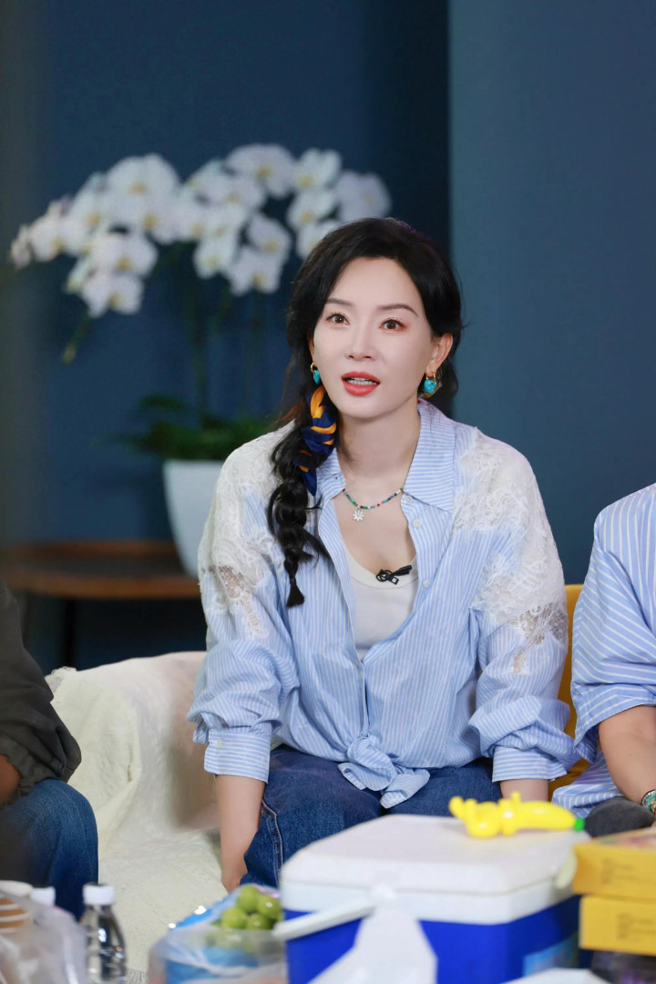 在《花儿与少年7》的镜头里,陈数凭借一套“蓝色条纹衬衫+直筒牛仔裤”的穿搭,再配上侧扎麻花辫的造型,彻底打破了大众对“中年穿搭”的刻板印象——原来基础款也能穿得如此简约高级,气质更是从优雅端庄的“大女主”,多了几分慵懒清爽的松弛感,让人忍不住直呼“这波造型太好嗑”!